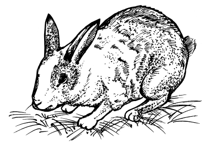 Кроликов (рис. 16) характеризуют пестрая окраска, грубоватая передняя часть головы, сама она пропорциональная, с округлыми щеками, уши широкие, довольно длинные (18 см), крепко сбитое округлое туловище, несколько вытянутое, длиной около 60 см, грудь широкая, длинная и широкая спина, закругленная в районе крупа, лапы прямые, длинные и толстые.