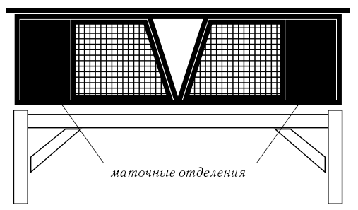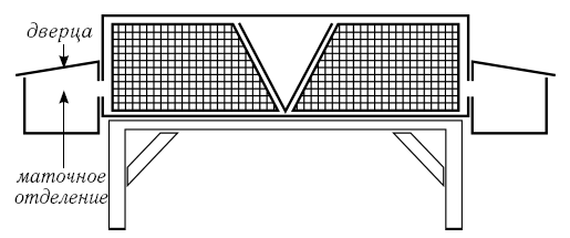 Рис. 27. Клетка с двумя отсеками и кормушкой между ними