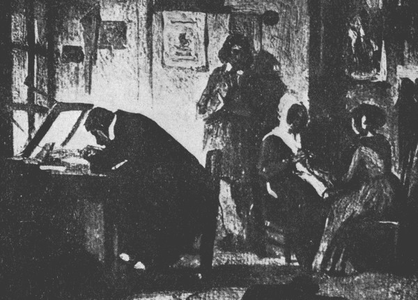 Живопись Домье нередко рассматривается в зарубежной искусствоведческой литературе как антитеза его графике. В литографиях художника видят непосредственное отражение действительности, в самом Домье — борца с общественными пороками. Что касается живописи, то Домье называют служителем «чистого искусства», далеким от перипетий современного бытия. Нет ничего ошибочнее такого рода противопоставления, и отрадно отметить, что Эсколье не пошел по этому пути. Не только в сценах революционного цикла, но во всех живописных произведениях мастера ощущается живая связь с его временем. Домье-живописец показал борьбу своих современников за свободу и демократию, их жизнь и труд, их радости и печали. Ближе других французских художников он подошел к революционному осмыслению действительности средствами искусства.