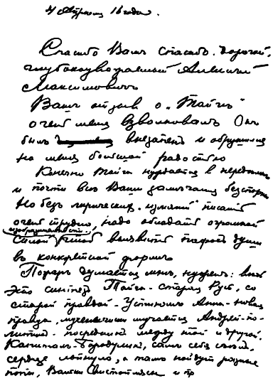 Письмо М. Горькому (1916 г.).