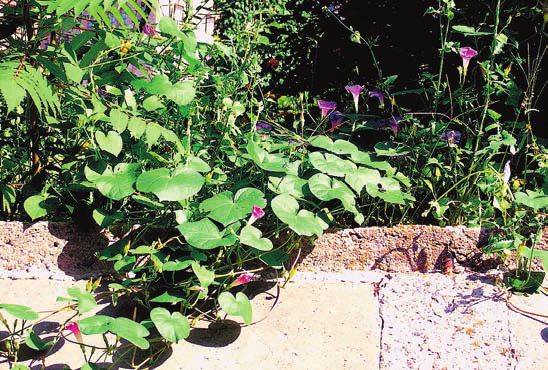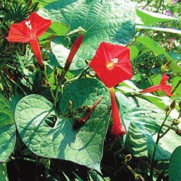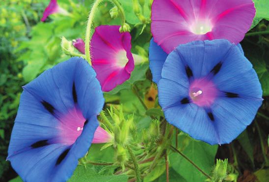 Ипомея (фарбитис) плющевидная – I. (Pharbitis) hederacea . Очень красивая лиана с вьющимся ветвистым стеблем длиной 2–3 метра и крупными сердцевидными, трехлопастными листьями, похожими на листья плюща. Цветки ее некрупные, диаметром до 5 см, голубые или розовые, реже пурпурные и красные, собраны по два-три на длинном цветоносе. Они однодневки и раскрываются с раннего утра до середины дня, затем увядают, но на следующее утро распускаются новые. Лиана покрыта цветами с июля до начала осени. Есть садовые формы с более крупными голубыми цветками с белой каймой, белыми или темно-фиолетовыми цветками с белой каймой.