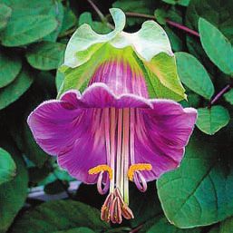 Кобея лазающая – С. scandens . Этот мексиканский эндемик наиболее известен садоводам. Он представляет собой многолетнее растение, чаще выращиваемое как однолетнее. Эта лиана активно ветвится, ее побеги до 4 метров длиной покрыты перистыми листьями, которые оканчиваются разветвленным усиком, при помощи которого растение закрепляется на опоре. Цветки светло– или темно-фиолетовые, колокольчатые, 6–8 см в диаметре, с длинными тычинками и пестиком.