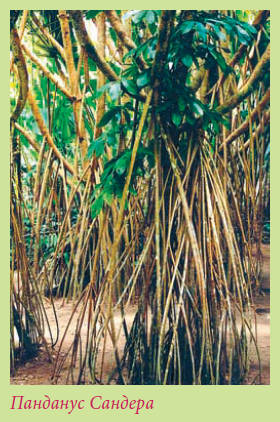 Панданус Сандера – Pandanus sanderi. Отличается от Пандануса Вейча листьями с многочисленными узкими желто-белыми продольными линиями. Известен только в культуре. Родина, возможно, полуостров Тимор.Период декоративности: круглый год.