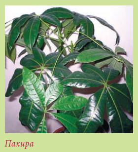 Пахира водная, Гвианский, или малабарский каштан – Pachira aquatica Aubl. Пахира водная имеет характерное утолщение нижней части стебля, размеры и состояние которого в некоторой степени зависят от условий содержания. Внутри утолщения находится полость, в которой накапливается вода. При отсутствии полива растение может расходовать запасы влаги, поэтому пахира вполне способно перенести некоторую пересушку земляного кома, но очень плохо выдерживает избыточный полив.