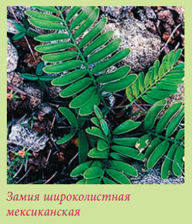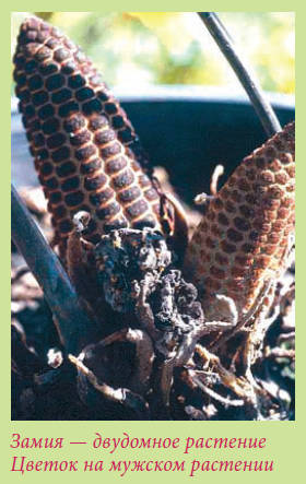 Замия – медленно растущее растение; для равномерного развития горшок время от времени необходимо поворачивать разными сторонами к свету.Замия широколистная мексиканская – Zamia latifolia. Это невысокие растения с реповидным стволом, то скрытым в почве, то лишь немного возвышающимся над ней, и с кроной из немногочисленных перистых листьев, редко превышающих в длину 60 см. Как и у других видов рода, листья у него развертываются один за другим, последовательно. Название «замия» очень древнего происхождения. Оно встречается уже у Плиния Старшего, обозначая «повреждение», и применялось тогда к бесплодным, поврежденным шишкам хвойных, которые находили опавшими на почву. Некоторые бесстебельные замии с их немногочисленными незаметными листьями и относительно крупными стробилами действительно с первого взгляда могут показаться «растениями-шишками». Но на самом деле стробилы замий по общему виду и строению больше похожи на стробилы хвощей. Щитовидные и на ножке, как у последних, спорофиллы замии расположены не спирально, а в вертикальных рядах. Каждая из чешуи (щитков) несет по два висячих семязачатка.