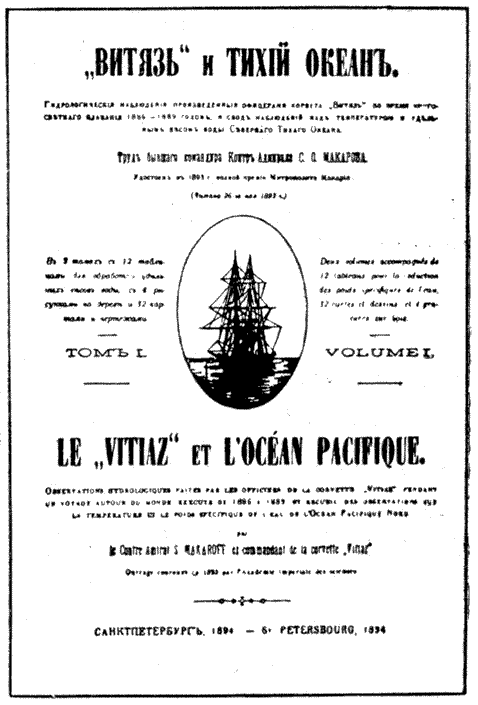 Титульный лист книги С. О. Макарова «Витязь» и Тихий океан». 1894 год.