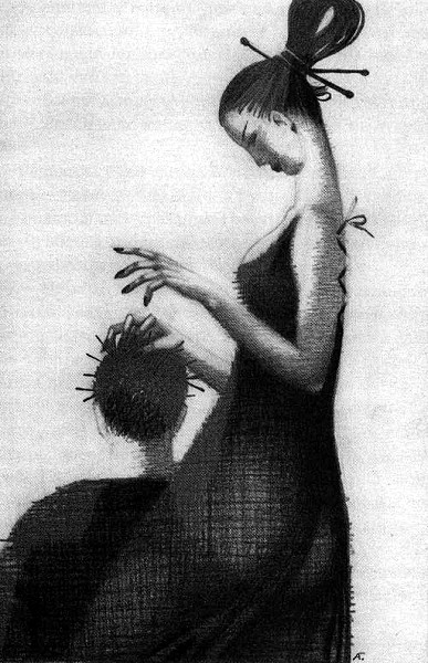 Вдруг Василий увидел женщину — ту, что представлялась Еленой. Она подошла к камину, взяла одну из курительных трубок и присела на подушки.