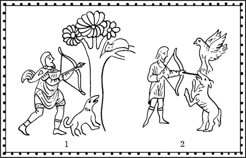 Косвенно об этом свидетельствуют и наставления по стрельбе. На дистанциях до 60 м из мощного лука били «прямой наводкой», то есть целились точно в центр мишени, не принимая во внимание силу тяжести и не делая превышения. И даже на дистанции в 150 м (вспомним 90 м у наших спортсменов) превышение бралось очень незначительное – к вершине цели подводили мизинец левой руки.