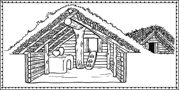 Вот как, например, выглядела «средняя» жилая изба IХ—ХI веков из города Ладоги (ныне Старая Ладога на реке Волхов). Обычно это была квадратная в плане (то есть если смотреть сверху) постройка со стороной 4–5 м. Иногда сруб возводили непосредственно на месте будущего дома, иногда же его сперва собирали на стороне – в лесу, а затем, разобрав, перевозили на место строительства и складывали уже «начисто». Учёным рассказали об этом зарубки-«номера», по порядку нанесённые на брёвна, начиная с нижнего. Строители заботились о том, чтобы не перепутать их при перевозке: бревенчатый дом требовал тщательной подгонки венцов.