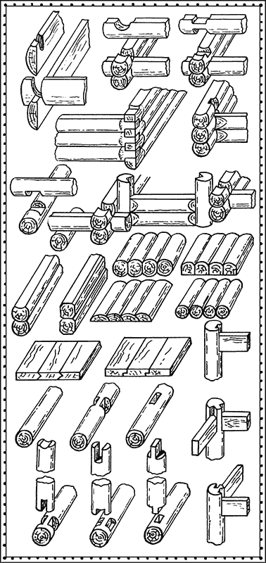 В крестьянском хозяйстве ХIХ века, зафиксированном этнографами, при рубке углов избы пользовались лишь простыми способами соединения брёвен. Более сложные – «в крюк», «в лапу», «в замок» – только проникали в обиход, и некоторые из них на Украине, например, называли «немецкими». Тогдашние немецкие авторы (настаивавшие на превосходстве немцев над славянами буквально во всём) поспешили сделать вывод: строительные традиции, мол, с древнейших времён заимствовались нашими предками у «более просвещённых» германских племён. Русский народ и в самом деле никогда не пренебрегал прогрессивными новшествами, но минуло время, и археологические раскопки установили: в старинном русском деревянном зодчестве использовалось до пятидесяти (!) способов врубки! В том числе и те, что в ХIХ веке именовались «немецкими»…