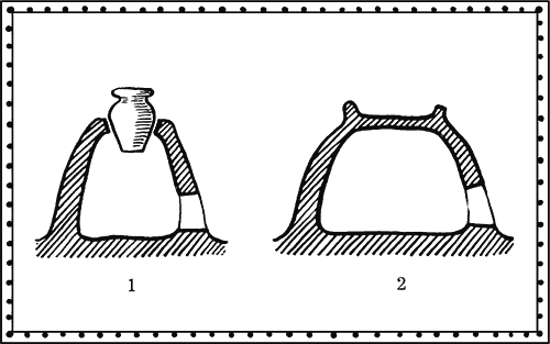 Выбор материала для печи (камня или глины) первоначально был связан с местными условиями, то есть с наличием или отсутствием подходящего камня. Однако в VIII—Х веках материал и форма печи (прямоугольная или круглая, появившаяся в Х веке) стали зависеть большей частью от сложившихся в данном месте традиций, превращаясь в этнографический признак.