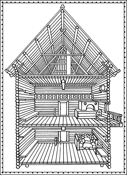 Судя по данным письменных источников, наши предки относились к неудобствам жизни в курной избе философски: «Горести дымные не терпев, тепла не видати!» Это не значит, конечно, что народная мысль не работала над усовершенствованиями. Про высокую кровлю уже говорилось; по утверждению многих исследователей, в ней устраивали отверстие-дымогон, открывавшееся с помощью специального шеста. Остроумным приспособлением были полки, тянувшиеся вдоль всех стен примерно на высоте нижней границы распространения дыма. На эти полки сыпалась сверху сажа: их так и называли – «сыпухи». Они разграничивали верхнюю, закопчённую, и нижнюю, чистую, части избы. Пониже сыпух устраивали другие полки – полицы, на которые ставили посуду.