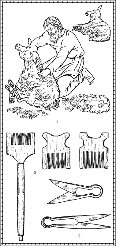 Шерсть в древнеславянском хозяйстве была в основном овечья. Считается, что овца была одомашнена несколько тысячелетий назад в Передней Азии и Египте. В курганах на реке Оке найден кусочек шерстяной ткани, оказавшийся в земле не позже 1000 года до нашей эры. Наши предки стригли овец пружинными ножницами, не особенно отличавшимися от современных, предназначенных для этой же цели. Ковали их из одной полоски металла, рукоятку выгибали дугой. Славянские кузнецы умели делать самозатачивающиеся лезвия, не тупившиеся при работе.