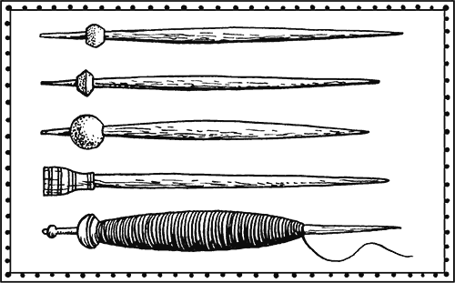 И в Древней Руси, и в Скандинавии времён викингов бытовали переносные прялки: кудель привязывали или прикалывали к одному её концу (если он был плоским, лопаточкой), либо насаживали на него (если он был острым), либо укрепляли как-то ещё (например, в рогульке). Другой конец вставляли за пояс – и женщина, придерживая пряслице локтем, работала стоя или даже на ходу, когда шла в поле, гнала корову, приглядывала за гусями… Дома, вынув из-за пояса, нижний конец прялки втыкали в отверстие лавки или специальной доски – «донца».
