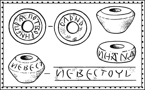 Есть основания думать, что женщины очень дорожили пряслицами: тщательно метили их, чтобы ненароком не «поменяться» на посиделках, когда начинались игры, танцы и возня. На пряслицах выцарапывали личные метки, а после распространения письменности – подписывали свои имена. На одном шиферном пряслице, найденном в Вышгороде близ Киева, чуть не с Х века сохранилась и дошла до нас надпись: «Потворин пряслень». Другое, видимо, было подарено парнем любимой девушке. На нём с величайшей аккуратностью выцарапано: «невесточь» – «невестин».