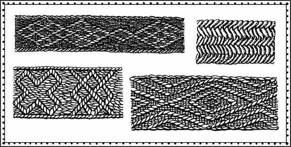 Такую узенькую тесьму использовали на «гашники» (см. главу «Штаны»), на «оборы» (см. главу «Лапти») или для обшивки понёв (см. главу «Понёва»), на петлицы для пуговиц. Подобный способ плетения отмечен этнографами не только у славян, но и у финнов, – по мнению учёных, это говорит о его широком распространении в древности. Действительно, при раскопках найдены фрагменты «дёрганых» шнурков и тесёмок. Тесёмки из толстых шерстяных нитей использовались, в частности, для изготовления браслетов.