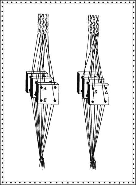 Существовали и другие виды плетения, позволявшие получать более широкие полосы тесьмы (на поясок или головную повязку), и притом трудясь в одиночку; однако они требовали большого внимания, иначе легко было запутаться в многочисленных нитях и испортить узор.