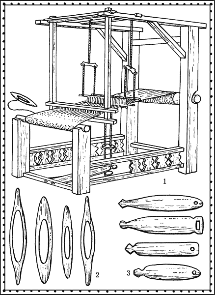 Термины ткацкого дела, и, в частности, названия деталей ткацких станков, звучат одинаково на разных славянских языках (например, на русском, чешском, польском, болгарском и сербском): по мнению языковедов, это свидетельствует о том, что «неткахами» наши далёкие предки ни в коем случае не были и, не довольствуясь привозными, сами выделывали прекрасные ткани. Археологи откопали тому и «вещественные доказательства». Так, при раскопках древних селений (в том числе и в наиболее ранних – VIII века – слоях города Ладоги) найдены довольно увесистые глиняные и каменные гирьки с отверстиями, внутри которых явно просматриваются потёртости от нитей. Учёные пришли к выводу, что это грузы, придававшие натяжение нитям основы на так называемых вертикальных ткацких станах.