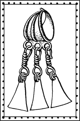 В одном женском погребении нашли целых тридцать три перстня в деревянном ларце. В других могилах перстни бывают связаны шнурком, уложены в горшочек, в туесок, в кожаный или вязаный кошелёк, просто на кусочек берёсты. Вероятно, здесь сказывались обычаи финских племён – соседей древних славян, и не просто соседей: некоторым из этих племён предстояло влиться в нарождавшийся древнерусский народ. Там, где такое соседство-родство становилось наиболее тесным, в славянских могилах встречены вполне финские типы перстней. Например, к юго-западу от современного Санкт-Петербурга и в среднем течении Волги носили так называемые «усатые» перстни, а во Владимирских курганах найдены «шумящие» перстни – снабжённые металлическими подвесками, способными звенеть одна о другую. Иногда эти подвески имеют весьма характерные очертания «утиных лапок» – утки и прочие водоплавающие птицы были священны для финно-угорских племён, согласно их верованиям, они участвовали в сотворении мира.