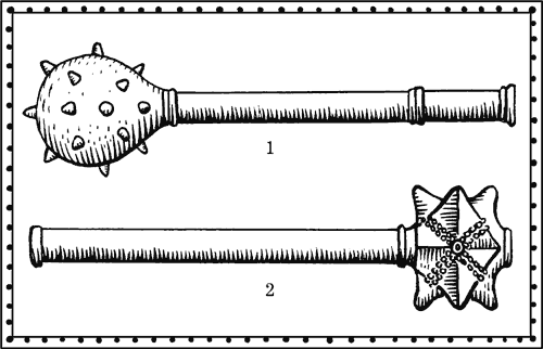 Что же касается древних дубин, наши предки славяне отлично сохранили память о временах, когда ещё не были известны металлы и люди «бились палицами и камнями». Об этом говорилось в главе «Мать Земля и Отец Небо». Деревянные дубины истлели в земле, не дождавшись лопат археологов, но из письменных источников известно, что они очень долго находились на вооружении. В самом деле: палицу мог изготовить себе самый последний ополченец, у которого не было даже приличного лука, не говоря уже о мече. Арабский путешественник Х века, рассказывая о вооружении встретившихся ему славян, упоминает дубинки. Их носили у пояса, в бою же стремились ударить противника по шлему. Иногда дубинки метали. Происхождение слов «палица» и «дубинка» в комментариях, надо думать, не нуждается. Другим названием палицы было «рогдица» или «рогвица».