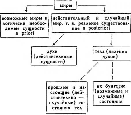 Логические (мыслимые) сущности возможных миров приобретают в нашем действительном мире статус духов (душ), а явления всех возможных миров в случае действительного мира имеют в таковом аналог в виде телесного проявления душ. Материальный мир, по Лейбницу, не менее реален, чем его духовная, идеальная сущность, которая в свою очередь столь же реальна, как и духовно (логически) существующие возможные иные миры, однако ее реальность какая-то иная. Как видно из выступления Лейбница против Беркли, Лейбниц проводил различие между чувственными иллюзиями, реальными восприятиями и не воспринимаемыми объектами, заявляя, что не все воспринимаемое реально и не все реально существующее воспринимается. Следовательно, существовать — не значит быть воспринимаемым (8, с. 11). Реальное существование коренится в конкретной возможности в отличие от общей возможности, т. е. от основания, на котором существуют возможные миры. Но все эти возможности, по Лейбницу, в конечном счете носят логический характер.