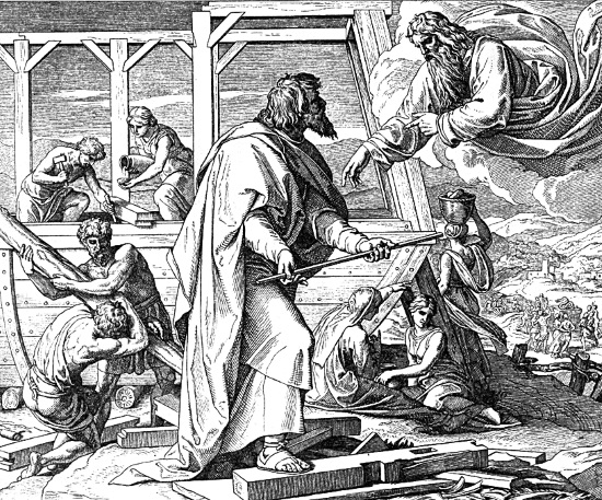 Предвещание Потопа и строительство ковчега. Гравюра
