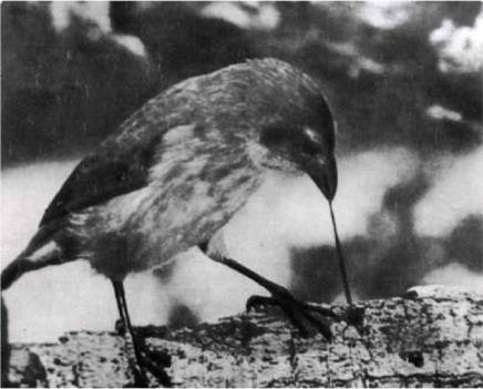 Дятловый вьюрок очень ловко орудует палочкой или колючкой, добывая из-под коры насекомых. Его близкий родич (тоже из галапагосских Дарвиновых вьюрков), мангровый вьюрок, добывает пропитание таким же хитрым способом.
