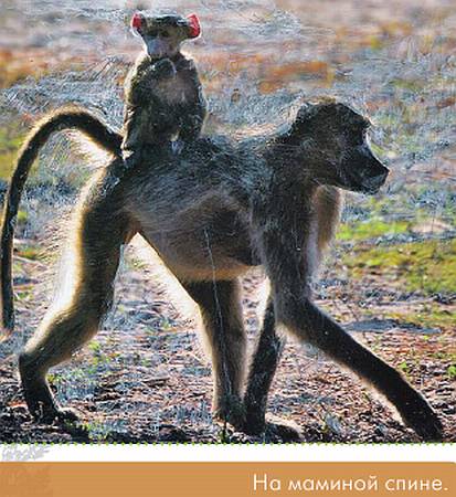 В жарких странах детишки обезьян сидят на спине матерей, держатся за космы их шерсти. Мать не боится прыгать с ветки на ветку высоких деревьев, и детей с первых дней приучают к этой акробатике.
