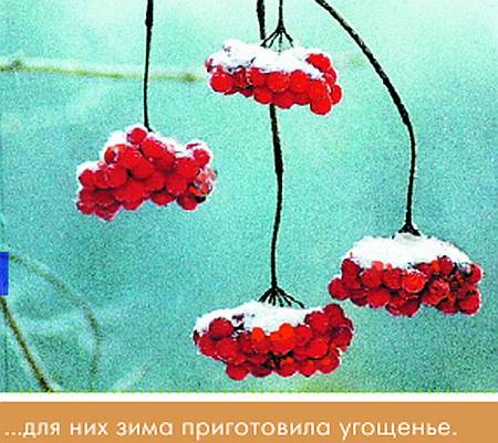 Следом за прилетевшими с Севера снегирями придут и снега. Знакомый лесник на кордоне подшивает старые валенки. Жена его к празднику щиплет гуся — белая горка перьев лежит на крыльце. Мальчишка-внук лезвием бритвы очиняет перо и, обмакнув в чернила, пишет на белом листе: «Скоро зима». «Да, теперь уже скоро, — соглашается дед. — Придёт, положит на дворе белый пачпорт — вот, мол, и я. Принимайте!»