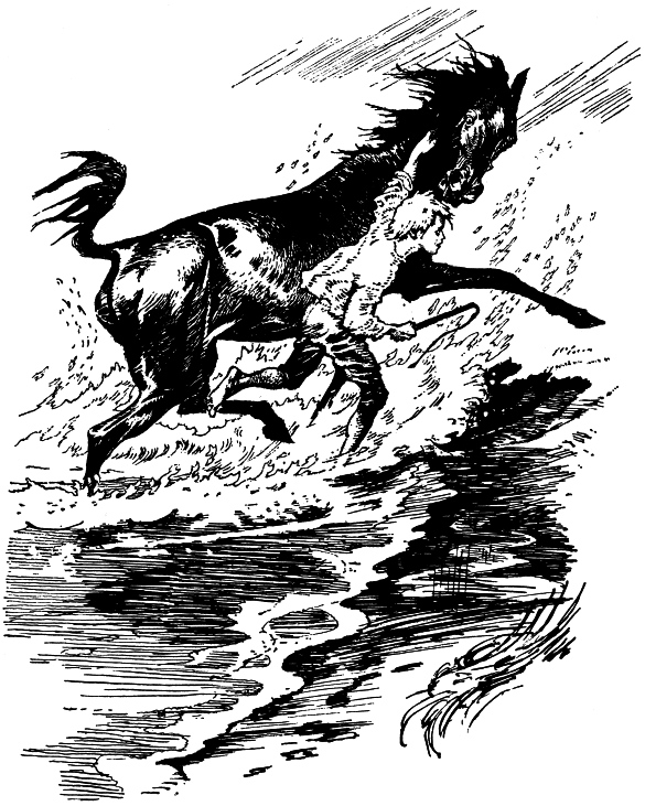 Конь вынес Александра на лужайку и остановился, ожидая, что еще придумает его своенравный седок. Александр промок совершенно. Ему следовало бы раздеться, развесить мокрое платье по кустам, чтобы обсушиться, – солнце уже ласково пригревало. Александр так бы и поступил, но конь вдруг закашлял. Мальчик испугался, что Шермак простудится от внезапного купания и захворает горячкой. Надо было его согреть. Не думая более о себе, Александр вскочил снова на коня, погнал его в гору и потом по знакомой лесной дороге к паромной переправе, чтобы вернуться домой. Конь скоро согрелся на бегу, но зато, по мере того как высыхала от ветра одежда Александра, сам всадник коченел: руки его заледенели, ноги сводило судорогой… Боясь свалиться, Александр все погонял коня, и они достигли переправы в ту самую минуту, когда нагруженный возами с сеном паром готовился отчалить. Александр спешился и ввел коня на паром.