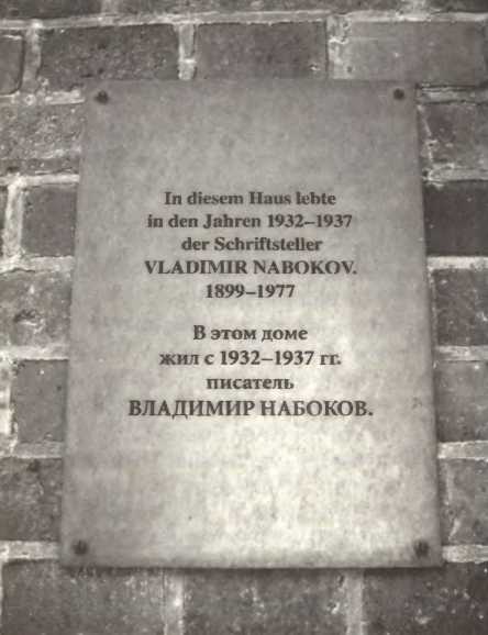 В Берлине писатель прожил до 1937 г. — пятнадцать «серых», как он говорил, лет. Немецкий писатель, профессор Карл Шлёгель — один из наиболее авторитетных в Германии специалистов по русской культуре XX в. — проследил основные адреса, по которым жил Набоков в Берлине. Эгерштрассе (Egerstrasse, 1, первый этаж) в Берлине-Груневальд в августе 1920 г. (у вдовы Рафаэля Левенфельда, переводчика Толстого и Тургенева, владельца обширной библиотеки); в сентябре 1921 года — переезд на Зехзишештрассе (Saechsischestrasse, 65 (67)) в Видьмерсдорфе (домовладельцем был один из потомков поэта Клейста), оттуда — в пансион на Траутенау-штрассе (Trautenaustrasse, 9), затем на Луитпольдштрассе (Luitpoldstrasse, 13) в Шёнеберге, далее на Мотцш-трассе (Motzstrasse, 31), после этого на Пассауэрштрассе (Passauerstrasse, 12) и оттуда снова на Луитпольдштрассе (Luitpoldstrasse, 27). Потом из-за нехватки денег Набоков перебирается в комнату в квартире семьи Кон по адресу: Вестфелишештрассе (Westfaelischestrasse, 29). Напоследок, в августе 1932 г., Набоковы переехали в дом по адресу: Несторштрассе (Nestorstrasse, 22, третий этаж). Здесь установлена памятная доска с надписью на немецком языке «В этом доме с 1932 по 1937 гг. жил писатель Владимир Набоков. 1899–1977». В 1937 г. Набоков переехал в Париж, где был опубликован его роман «Дар», рассказывающий о жизни русской литературной богемы Берлина 1920-х гг.