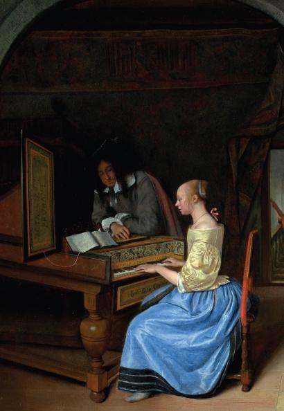 Молодая женщина, играющая на клавикордах молодому человеку. Стин Я.