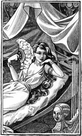 …Красота этой женщины была не тою, что зовется несравненною и поражает с первого взгляда, зато обращение ее отличалось неотразимою прелестью, и потому ее облик, сочетавшийся с редкою убедительностью речей, с огромным обаянием, сквозившим в каждом слове, в каждом движении, накрепко врезался в душу. Самые звуки ее голоса ласкали и радовали слух, а язык был точно многострунный инструмент, легко настраивающийся на любой лад, – на любое наречие, так что лишь с очень немногими варварами она говорила через переводчика, а чаще всего сама беседовала с чужеземцами – эфиопами, троглодитами, евреями, арабами, сирийцами, мидийцами, парфянами… Говорят, что она изучила и многие языки, тогда как цари, правившие до нее, не знали даже египетского, а некоторые забыли и македонский.