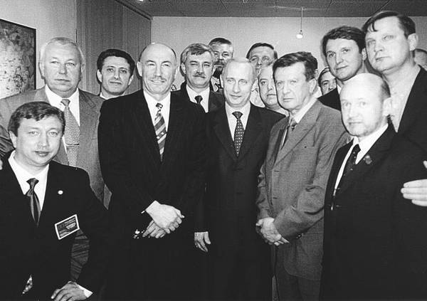Школу «САМБО-70» посетил президент России – В.В. Путин. Рядом – президент Всемирной федерации САМБО Д.Л. Рудман. В левом нижнем углу директор УСК «САМБО-70 – Р.А. Лайшев.