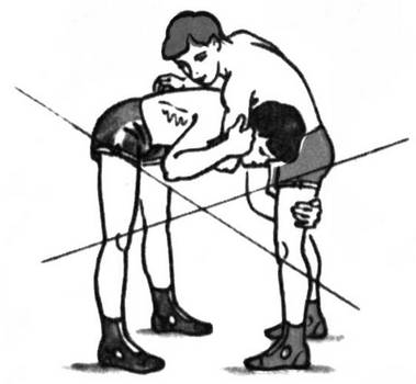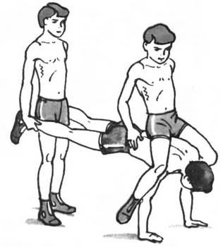 Если вы правильно взяли партнера на плечи, то с удивлением замечаете, что он не такой уж и тяжелый. Дело в том, что его центр тяжести приходится на ваш позвоночный столб. Научившись правильно делать это упражнение, вы к тому же освоили подворот на прием «Бросок через плечи», или, как его еще называют, «Мельница».