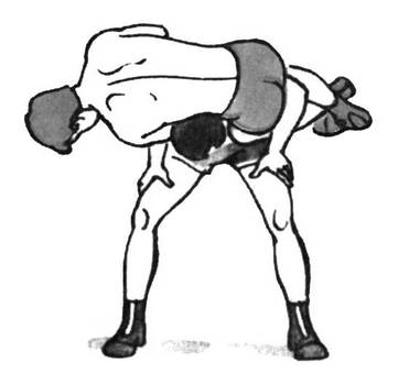 Ноги в том же положении. Партнер крепко держится за вас руками и ногами. Делая наклон, вы переносите массу партнера себе на шею. Если вам трудно удержать его в этом положении, обопритесь ладонями о колени (но к этой маленькой хитрости прибегайте только в начале тренировок). Теперь разгибайтесь, поднимая голову.