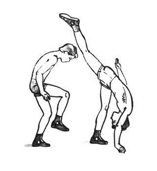 Зафиксируйте плечи и, стараясь не менять их положения, вращайте тазом по и против часовой стрелки с большой амплитудой. Это важное для борца упражнение, потому что броски проводятся при амплитудных движениях тазового пояса.
