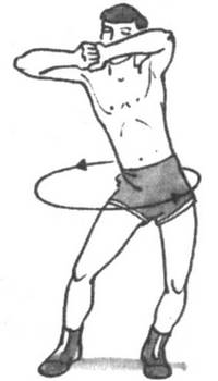 Вращая туловищем по или против часовой стрелки, делайте энергичные наклоны вперед, вбок, резко разгибая позвоночник.