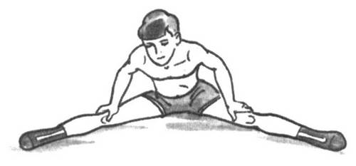 Попробуйте сесть на шпагат, опираясь на руки. Не сгибая ног, постарайтесь коснуться паховой областью ковра: одна нога впереди, другая – сзади (а); ноги разведены в стороны (б).