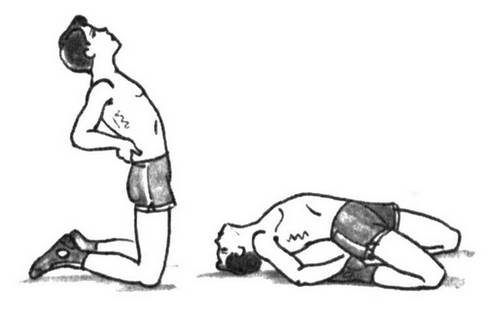 Стоя на коленях (а), прогнитесь назад так, чтобы, не касаясь лопатками ковра, достать его затылком (б). Не опираясь на руки, вернитесь в и. п.