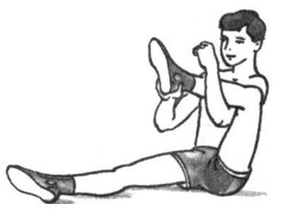 Это упражнение – простейшее из класса так называемых растяжек. Сидя на ягодицах, возьмите ногу разноименной рукой за пятку или выше лодыжек и поднимите вверх. Одноименную руку просуньте изнутри, положив на нее подколенную ямку. Постарайтесь завести голень на плечо как можно выше.
