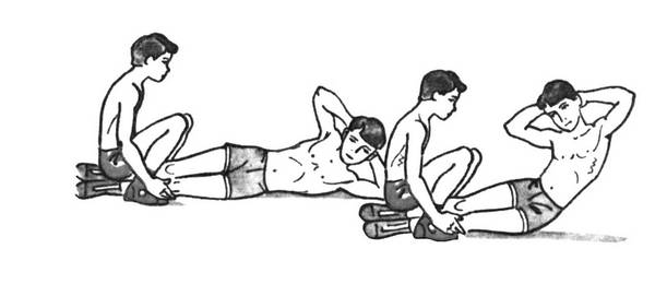 Делать упражнение нужно не менее 10–20 раз. Основная нагрузка при выполнении движения падает на мышцы брюшного пресса. У партнера с нагрузкой работают мышцы шеи, напрягаются спина и руки.
