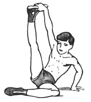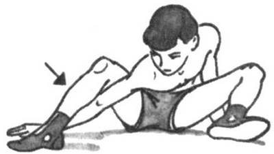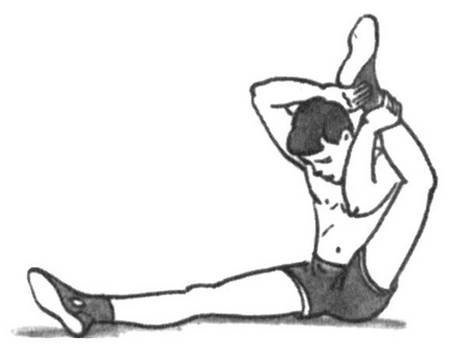 Сидя на ягодицах, возьмите рукой одноименную ногу за ступню, выпрямите и согните ее не менее 10 раз, после чего ногу поменяйте.