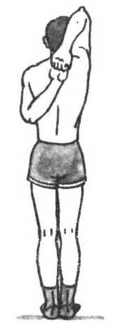 Заведите руку за спину, положив тыльную поверхность кисти на поясницу. Другой рукой возьмитесь за локтевой сгиб и максимально выведите локоть вперед, после чего верните руку в и. п. Делайте упражнение с постепенным увеличением амплитуды движения.