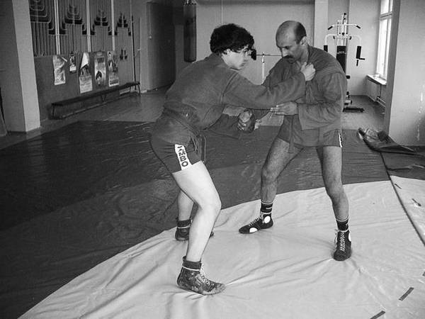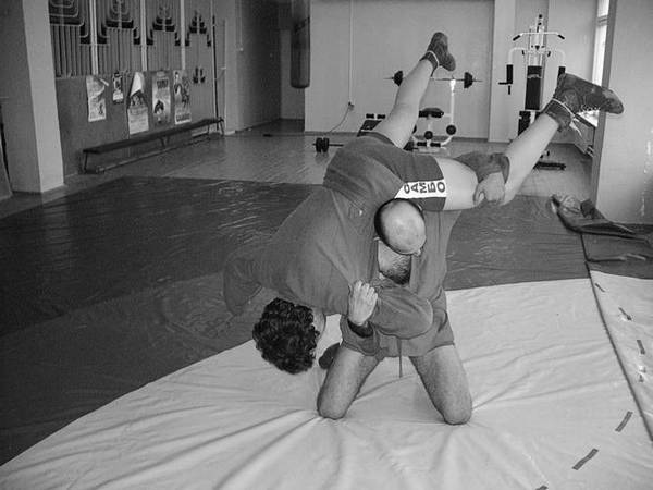 Бросок через плечи с коленей.