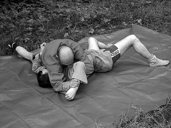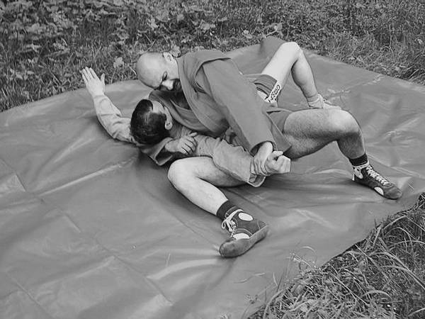 Даже физически менее развитый спортсмен может провести этот прием более сильному, потому что одну руку противника атакуют две руки, две ноги, кроме того, что еще работают мышцы спины.