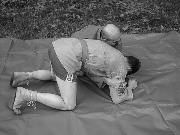 Для того чтобы добиться победы, проводя болевой прием или удержание, нужно уметь выполнять переворачивания. В литературе обычно классические переворачивания в партере разбирают из стандартного положения, когда борец старается перевернуть стоящего на четвереньках противника и прижать его лопатками к ковру. Надо сразу сказать, что положение это более характерно для таких видов спортивной борьбы, как вольная и классическая. В самбо чаще встречается ситуация, когда противник, защищаясь от болевого приема или удержания, ложится на ковер ничком, убирая локти под себя. Однако знать приемы, применяемые борцами других стилей, самбисту тоже надо.
