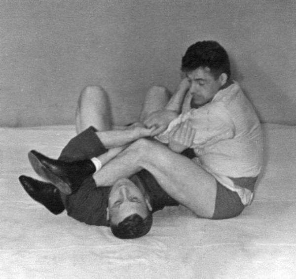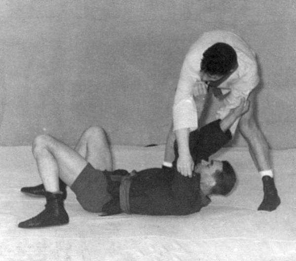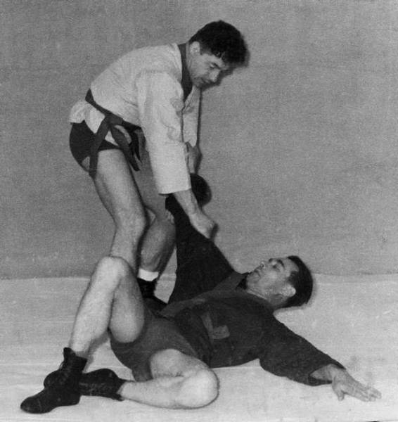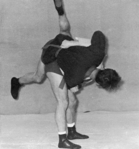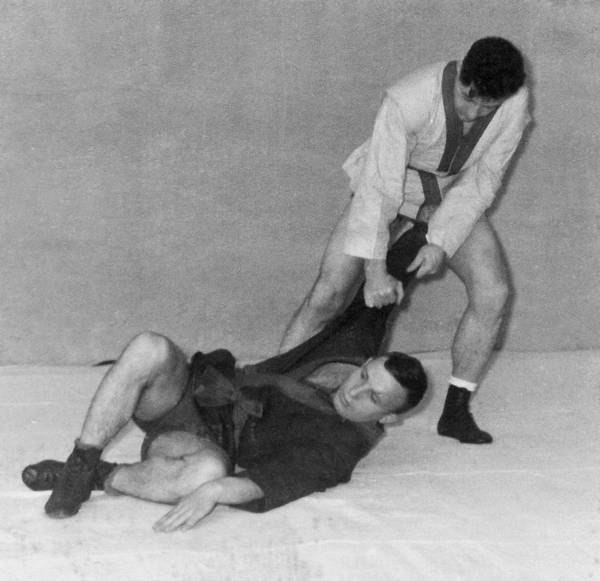 в. Упасть противник должен так, чтобы голова его оказалась между ног самбиста.