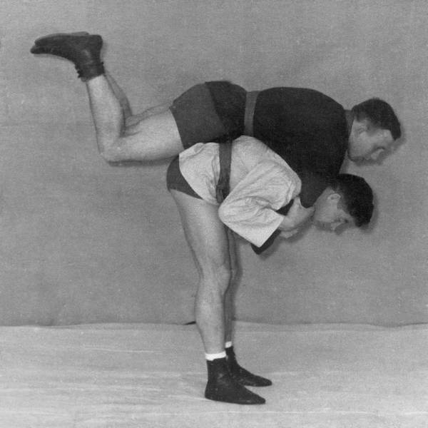 9. Бросок через спину с захватом за руку и пояс противника и переходом на удержание со стороны головы за руку и шею. (В самбистской литературе этот прием часто трактуется как «бросок через бедро»).
