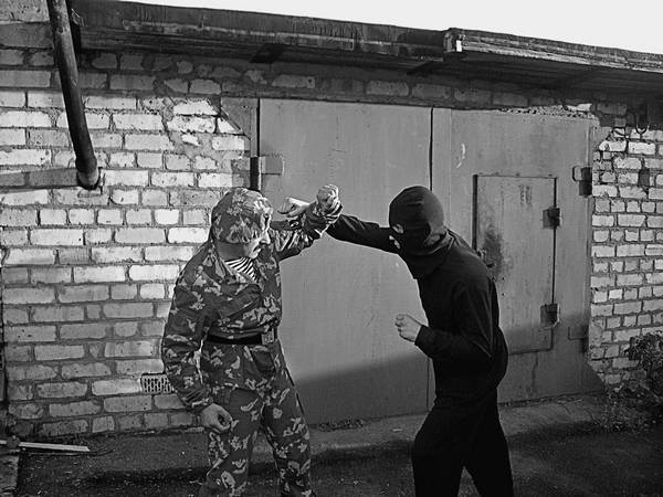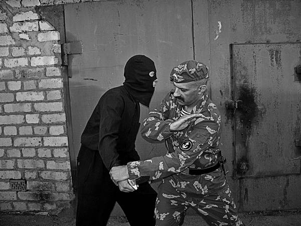 Для того чтобы эффективно проводить тычковые (точечные) удары, нужно иметь хорошо подготовленные для этой цели пальцы. Способы тренировки могут быть самыми разнообразными. Древневосточные единоборцы, например, делали это так: наполняли ведро сыпучим содержимым и погружали в него пальцы сначала медленно, потом быстрее, затем молниеносно, делали «руку-копье». Все увеличивали глубину погружения, пробивая песок до дна. Затем песок заменяли на гальку, а ее – на камни (Попов Долин, «КЭМПО»). Конечно, для тех, на кого книга рассчитана, использовать этот способ мы рекомендовать не можем, так же, как и предложить попробовать потренироваться, чтобы на вашей голове кувалдой разбивали бетонную плиту. Но есть более простые способы тренировки пальцев – кистевые эспандеры и отжимание в упоре лежа на пальцах. Целью атаки могут быть точки наибольшей болезненности: яремная вырезка самая нижняя точка передней поверхности шеи, над точкой грудины; область солнечного сплетения; место под нижней частью ушной раковины. Очень опасным может быть точечный удар пальцем в глаз. Помимо того, что произойдет тяжелая травма органа зрения с необратимыми последствиями, это шокогенная зона, попадание в которую может вызвать остановку сердца (рефлекс Ашнера). Для нанесения точечных ударов необходимо правильно выбирать дистанцию и позицию. Важно то, каким пальцем боец наносит удар. Ведь может случиться так, что сильный тычок в глаз не достигнет цели (противник отклонится), а придется в костную часть черепа. Тогда результатом атаки будет перелом атакующего пальца. Поэтому если пальцы специально не тренированы, следует наносить тычковый удар первым (большим) пальцем плотно прижатым к кулаку, чтобы заблокировать межфаланговое сочленение. Если противник в плотной одежде, в солнечное сплетение направлять атаку нет смысла – можно потерять инициативу. Удары по уязвимым точкам головы можно проводить из различных, казалось бы, самых невыгодных положений. К примеру, схватка происходит в положении лежа, когда противник, превосходящий бойца по силе, сверху и при этом пытается провести удушающий захват. Руки его заняты и помехой для проведения приема служить не могут. Одной рукой можно блокировать свой ворот или его руки, другой же, хорошо прицелившись, нанести точный и неотразимый «тычок».